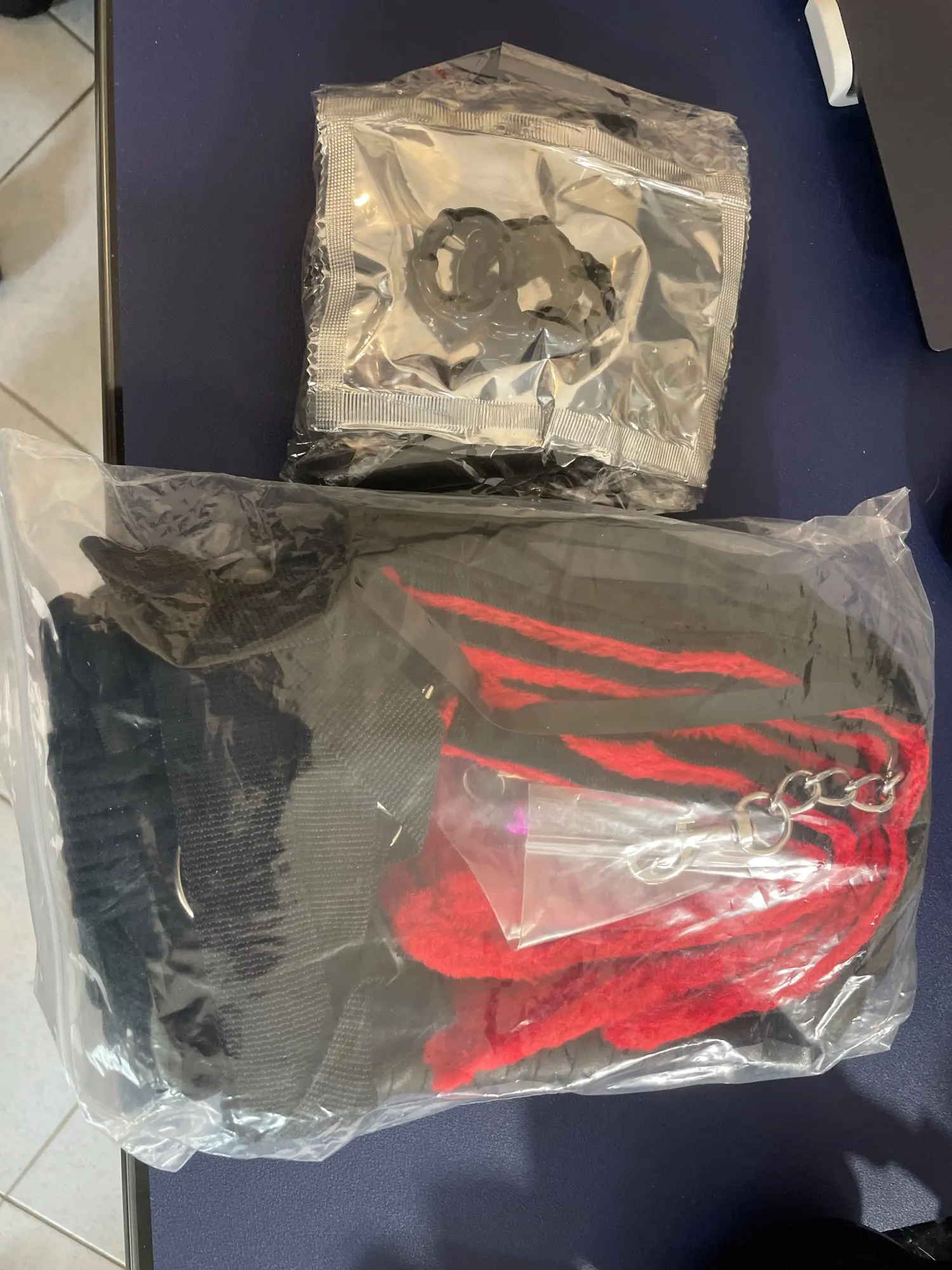 Coloris : noir et rouge (intérieur des menottes et collier)